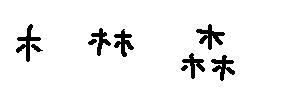 Evo... sada sam upravo imao "čas" kineskog. Nacrtaju simbol za drvo (mu) pa onda dva takva (novi simbol - lin) koja znače "nekoliko drveća", pa onda tri takva (sen) koja znače "šuma". Nisu oni budale...