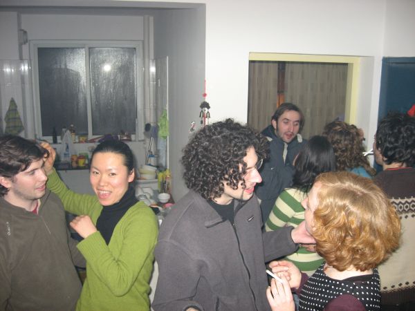 Danas su stigla dvojica Španaca, koji inače žive u pekingu neko vreme, pa su došli u posetu kod Rakel i Alfonsa. Zajebanti neki. Pišu neki "final project", tj. diplomski rad o Kinezima i njihovoj kulturi. Drugim rečima, ne rade ništa, obaveze = maltene nula. Uveče je dogovor bio da se svi okupimo kod Rakel i Alfonsa u stanu, pa da zajedno odemo negde, kao i obično. U pola10 okupljanje, i polozak. Došli mi... momci piju tu kinesku rakiju, koju zovu "vino od pirinča", mešanu sa koka-kolom. Digresija.... često se sa ulice čuje neka muzika, kao iz jeftinih igrački (kakva se čuje inače, kada uključimo ili isključimo klimu i veš mašinu u stanu. Frižider ne svira). Poenta je da kamion iz kojeg šiklja voda i čisti ulice svira, da bi skrenuo pažnju biciklistima. Znači kamion vozi, svira, prska, a biciklisti beže na sve strane. I tako... gde sam stao. Pili mi tu mešavinu smrdljive žestine i slatke koka-kole. I negde oko 12 neko se setio da bismo mogli polako da krenemo, jer je prvobitni plan bio da se ide oko 10. Atmosfera vesela... priča se Španski, Srpski, Engleski, Kineski (u gostima nam je bila i pomenuta Lo Đin). Neko je snimio film na kojem na srpskom psujem Rakel i Alfonsa jer za 10ak dana idu kući. Stvarno mi je žao, jer su ekstra likovi i sa njima nikad nije dosadno.