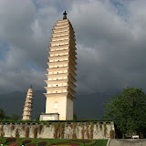 Simpatičan gradić... unutar zidina su stare ulice, ali ipak po većim idu autobusi javnog prevoza i automobili pa to malo kvari utisak. Bez obzira... male radnjice i sitni restorani prave atmosferu nekog ranijeg vremena. Žao mi je što ne znam kako se zovu neka tradicionalna jela provincije Junnan (pošto svaka provincija ima svoju kuhinju, koja se bar po nečemu razlikuje od ostalih). Ali dobro... tu su stara dobra jela koja smo doktorirali u Hangdžou. U nekom malom fast-food restorančiću sam se najeo i popričao sa neka dva Kineza koji su isto iz Hangdžoua došli da obiđu Lijiang. Pošto sam u hostelu pazario neku lepu mapu (stvarno lepo izgleda... lep suvenir) rešio sam da se uputim u park "Tri Pagode". To je najpoznatije turističko odredište u Daliju i tu se po sunčanom danu tri pagode ogledaju u nekom jezercetu... fino, nema šta! Kada sam ostavio bajs na nekom parkingu, malo sam se zblanuo kada sam čuo da je ulaznica za ovaj kompleks hramova i parkova oko 1000 dinara!! To je otprilike duplo više nego za Kineski Zid, a skuplje i od Zabranjenog Grada... baš su ga razvalili sa cenom.... ali šta sad? Ko zna kada ću i da li ću opet da se vratim ovde... daj tu kartu pa da vidimo te pagode i to jezero dok se ovi oblaci nisu navukli.