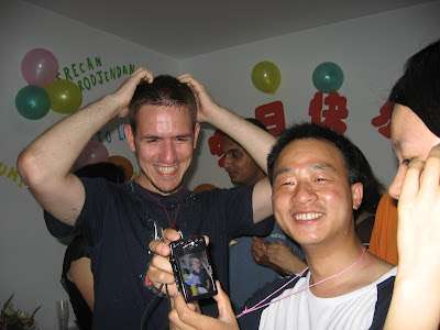 Everything was arranged... food, drinks, baloons, music... everything! On the wall it was written "happy birthday" in Chinese (big letters that I brought home to Serbia :-), English, Spanish, Portugese, Polish and even Serbian! Later I've found out that Katia was the "main organizer" :-) Thank you so much! Everybody important was here. I am leaving in a few days, and I was not sure if I could see some of those people again. Emotions flooded me so easily, and it was hard for me to hide my red wet eyes.